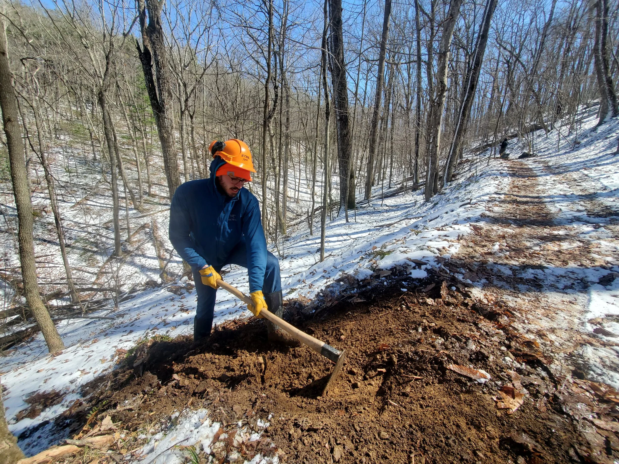 Keeping the trails you love in usable condition takes work! It rains a lot in Blacksburg and it takes work to keep the trails from washing off the mountain!